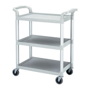 *Versatile, durable, and economically-priced utility cart *Holds up to 300 pounds *Marine rails and lightly textured polypropylene shelves keep contents in place *Aluminum uprights ensure stability *Four each 5" swivel, powder coated steel casters are quiet and non-marking *Assembly required * 32 7/8" x 16 1/4" x 38"
