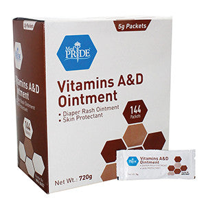 MedPride Vitamin A & D Ointment is a skin protectant for minor cuts, scrapes, and burns. Vitamins A and D Ointment additionally treats skin irritations such as chapped or cracked skin and lips, and the drying effects of wind and cold weather. By sealing out wetness, A&D Ointment further helps prevent and protect chafed or irritated skin associated with diaper rash. Vitamin A & D Cream is also ideal for tattoo aftercare.